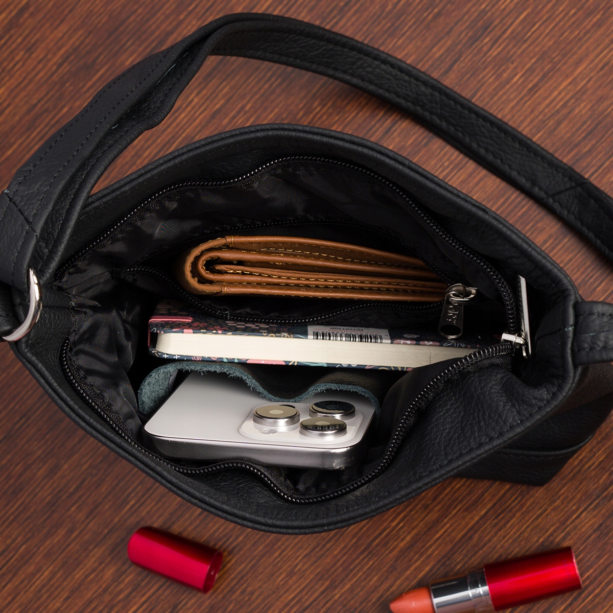 Torebka damska skórzana listonoszka mała premium czarna klasyczna Beltimore