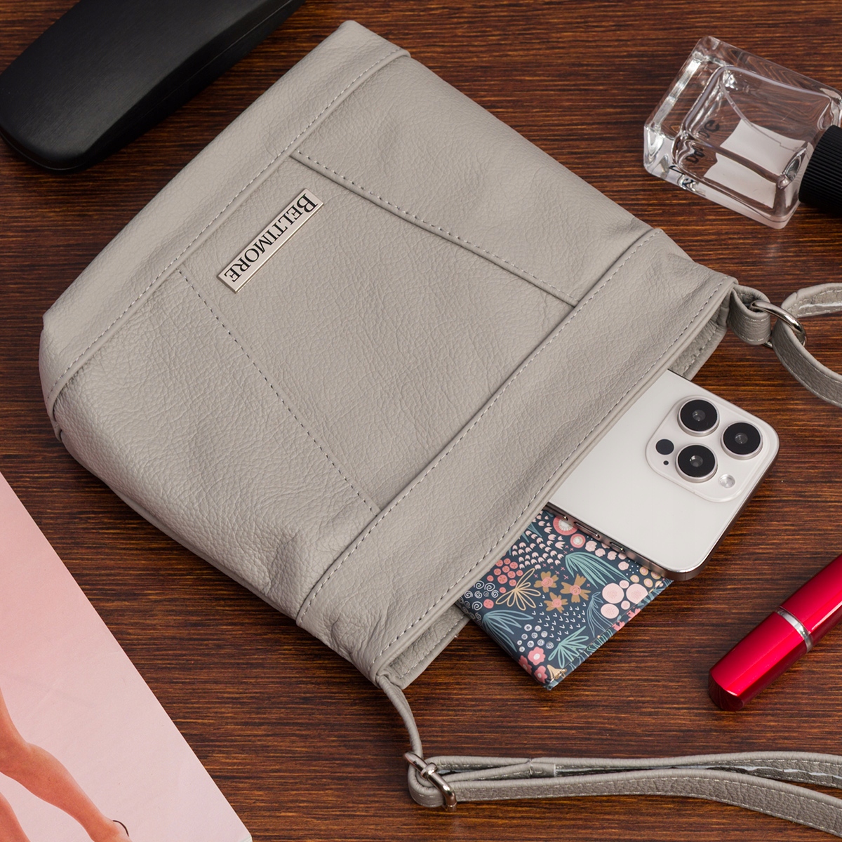 Elegancka Jasno Szara Torebka Listonoszka skórzana Beltimore® – Klasyka i Funkcjonalność w Jednym