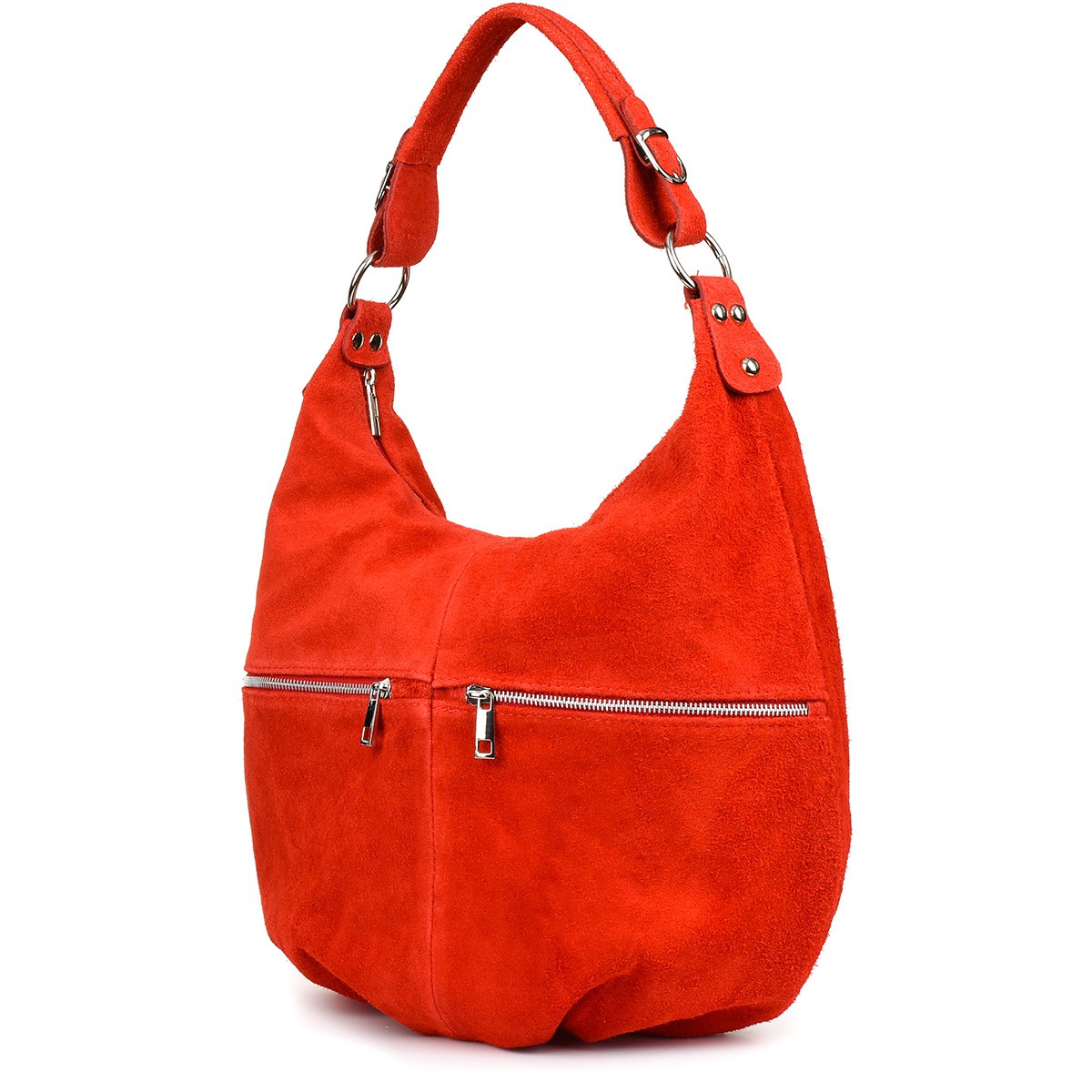 Torebka damska skórzana worek shopperka zamszowa duża A4 czerwona K51