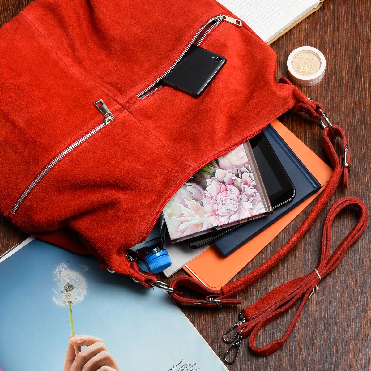 dc625498bd08d21e5492cc4b0a0ac1c3Torebka damska skórzana worek shopperka zamszowa duża A4 czerwona K51