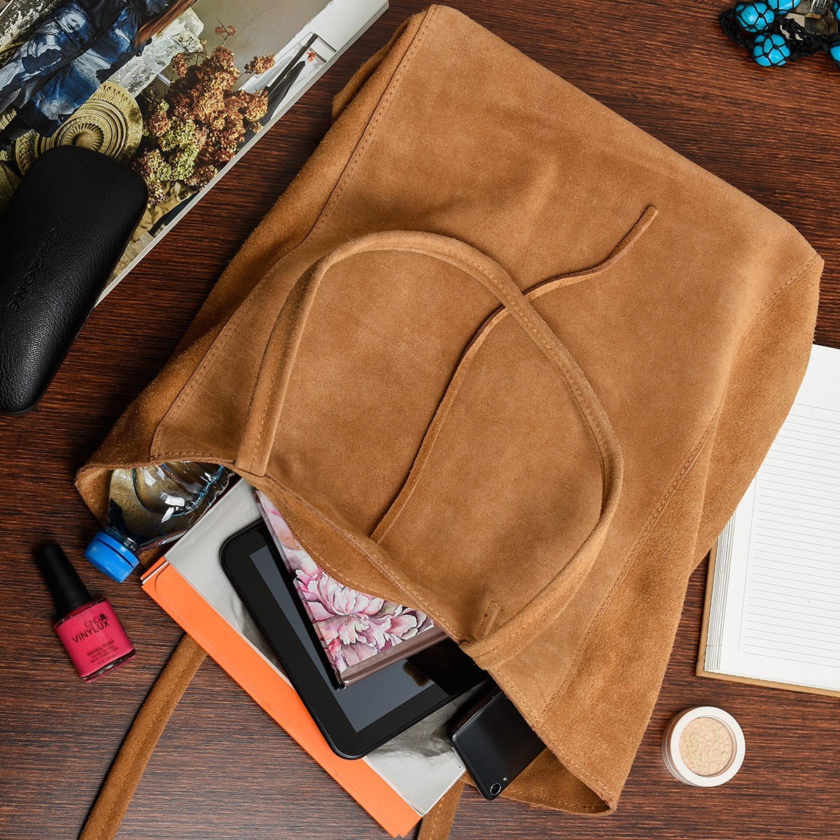 Torebka damska skórzana zamszowa duża torba włoska shopperka camel W18