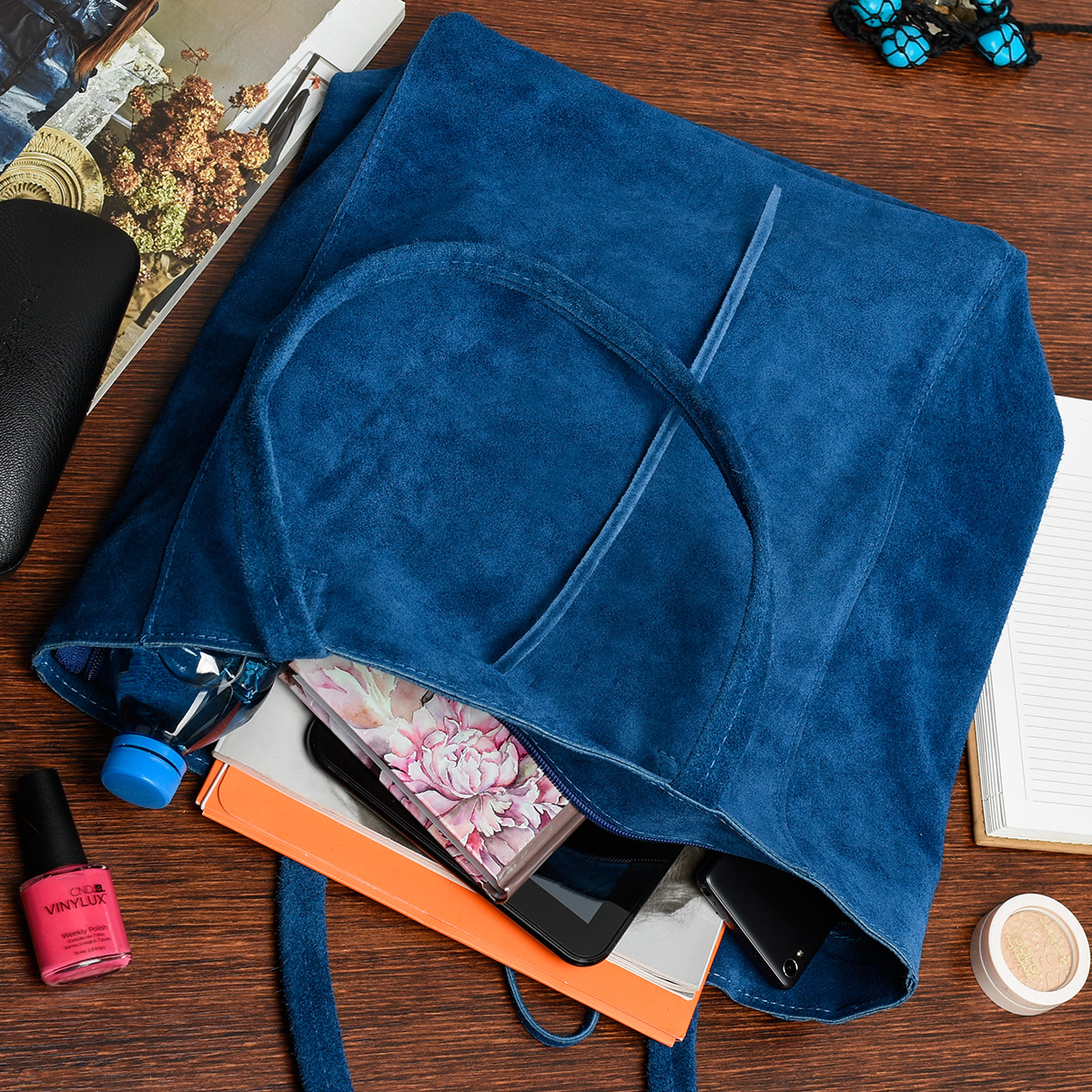 Torebka damska skórzana zamszowa duża torba włoska shopperka niebieska W18
