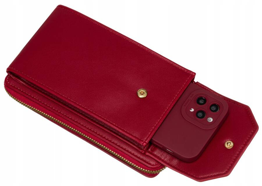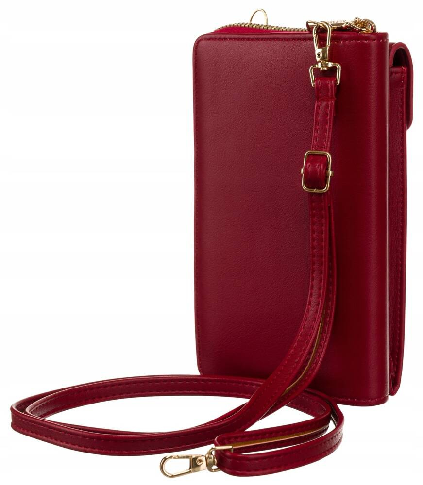 Na froncie torebko-portfela znajduje się praktyczna kieszeń na telefon o wymiarach 16,5 x 8 x 1,5 cm. Kieszeń posiada klapkę z zapięciem typu zatrzask.