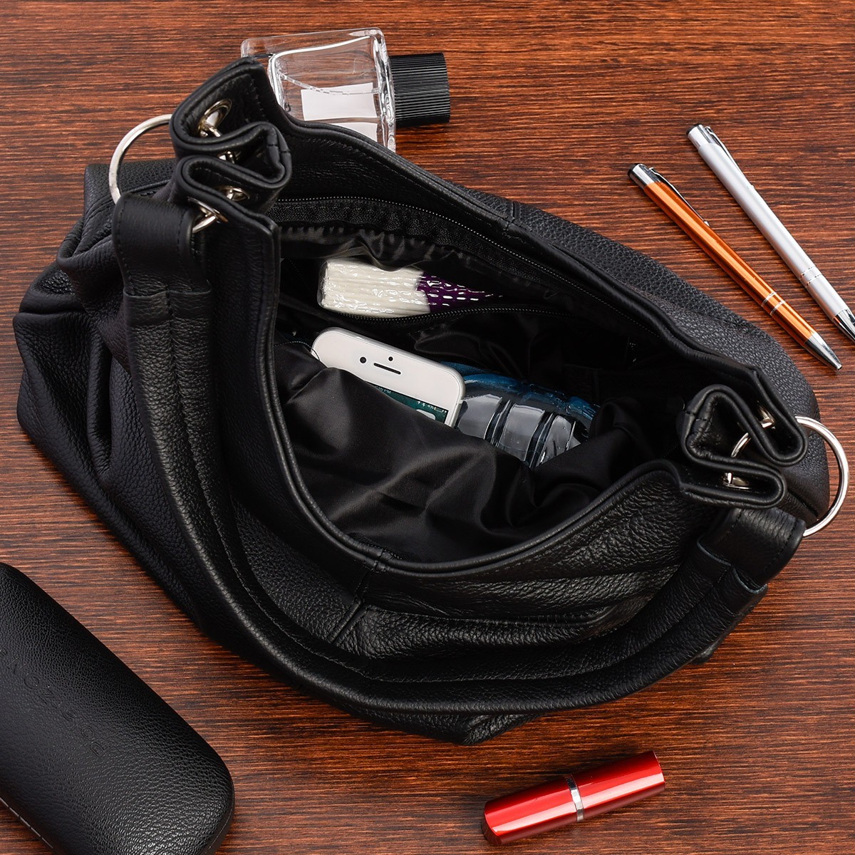 Torebka skórzana damska duża worek pojemny czarna Beltimore 970