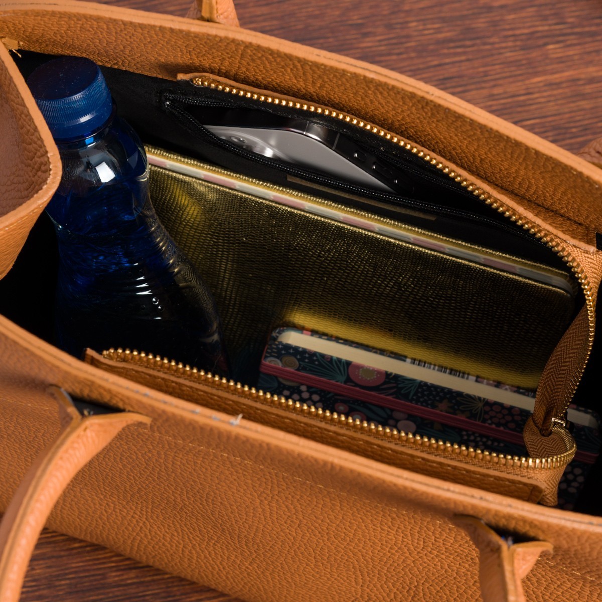 Torebka skórzana damska klasyczna pojemna A4 skóra włoska Beltimore camel W21