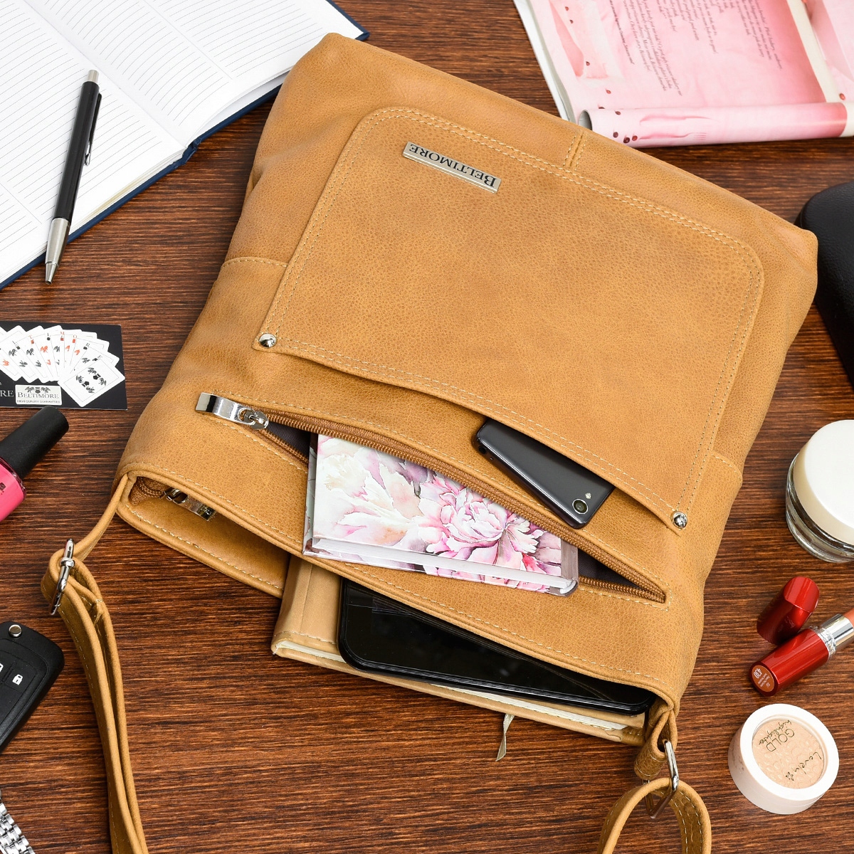 Torebka skórzana damska listonoszka A4 pojemna camel Beltimore 974