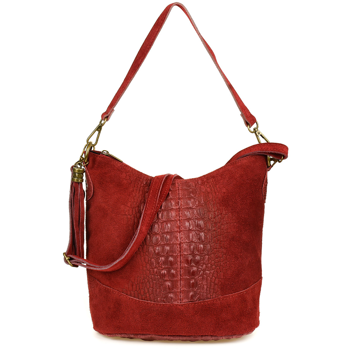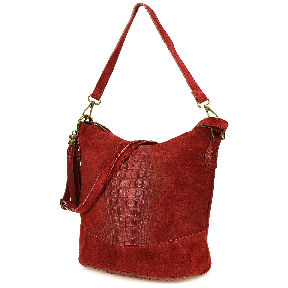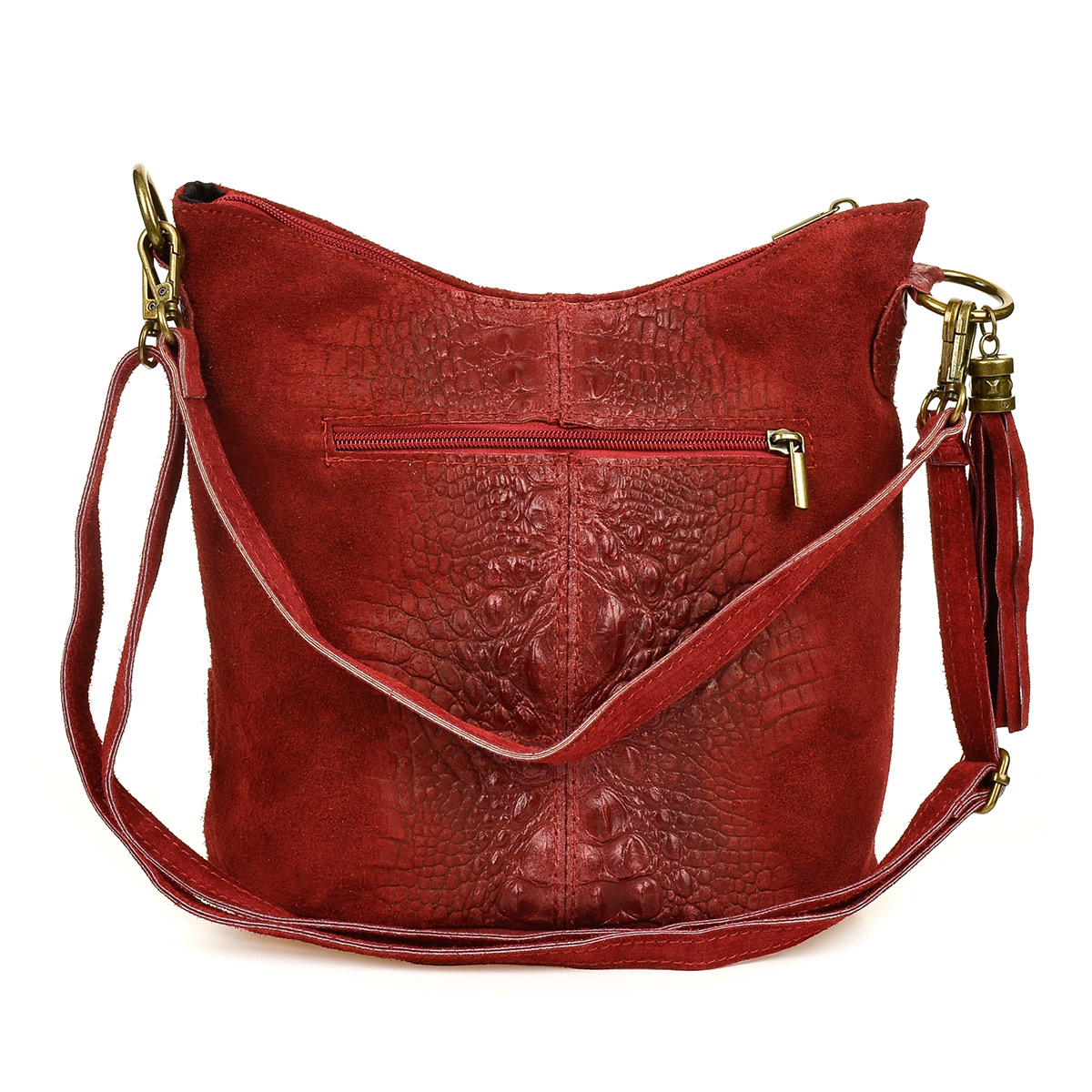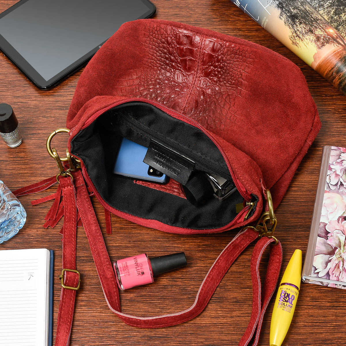Torebka skórzana zamszowa CROCO listonoszka 2 paski bordowa Beltimore W13