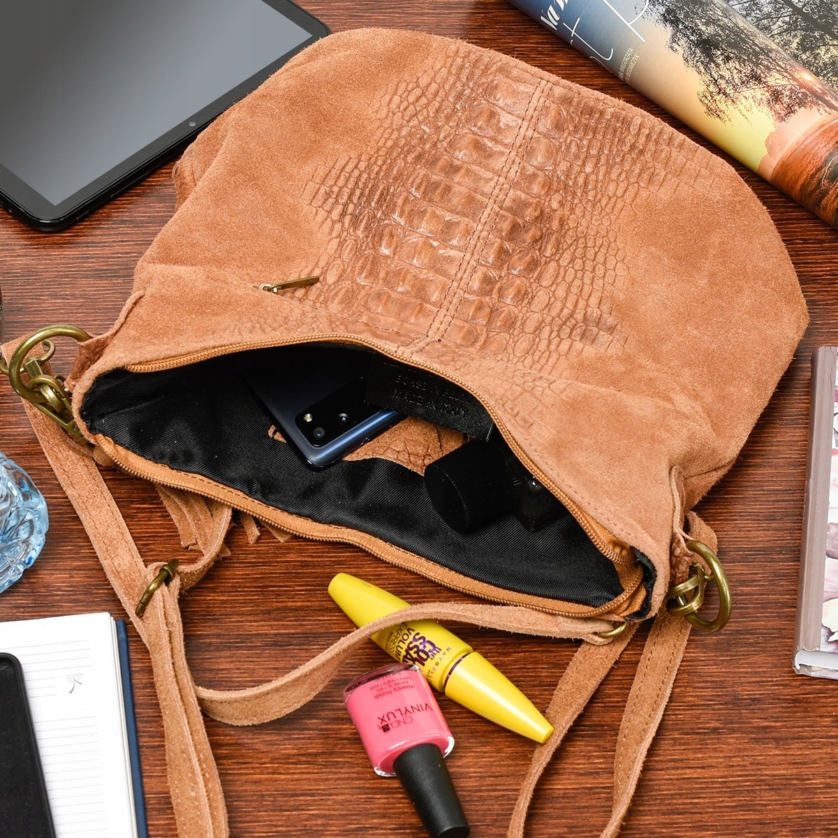 f40c3031968e014307955ad36eced014Torebka skórzana zamszowa CROCO listonoszka 2paski