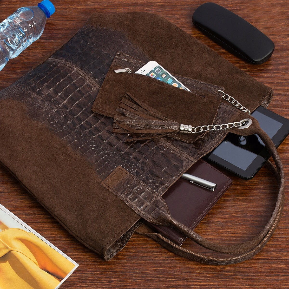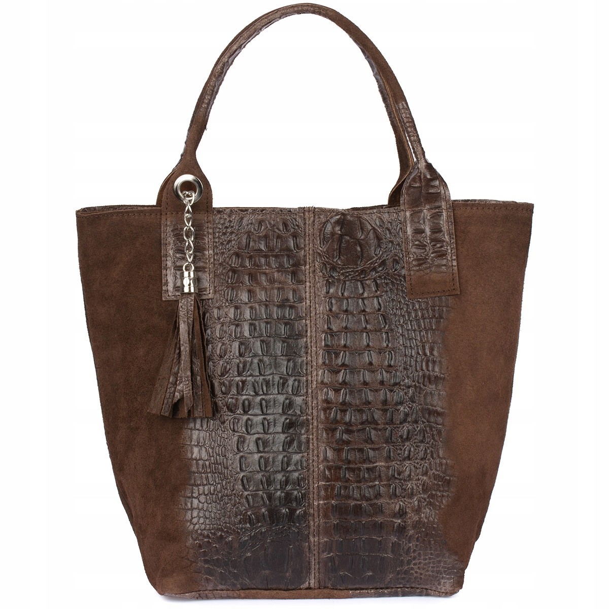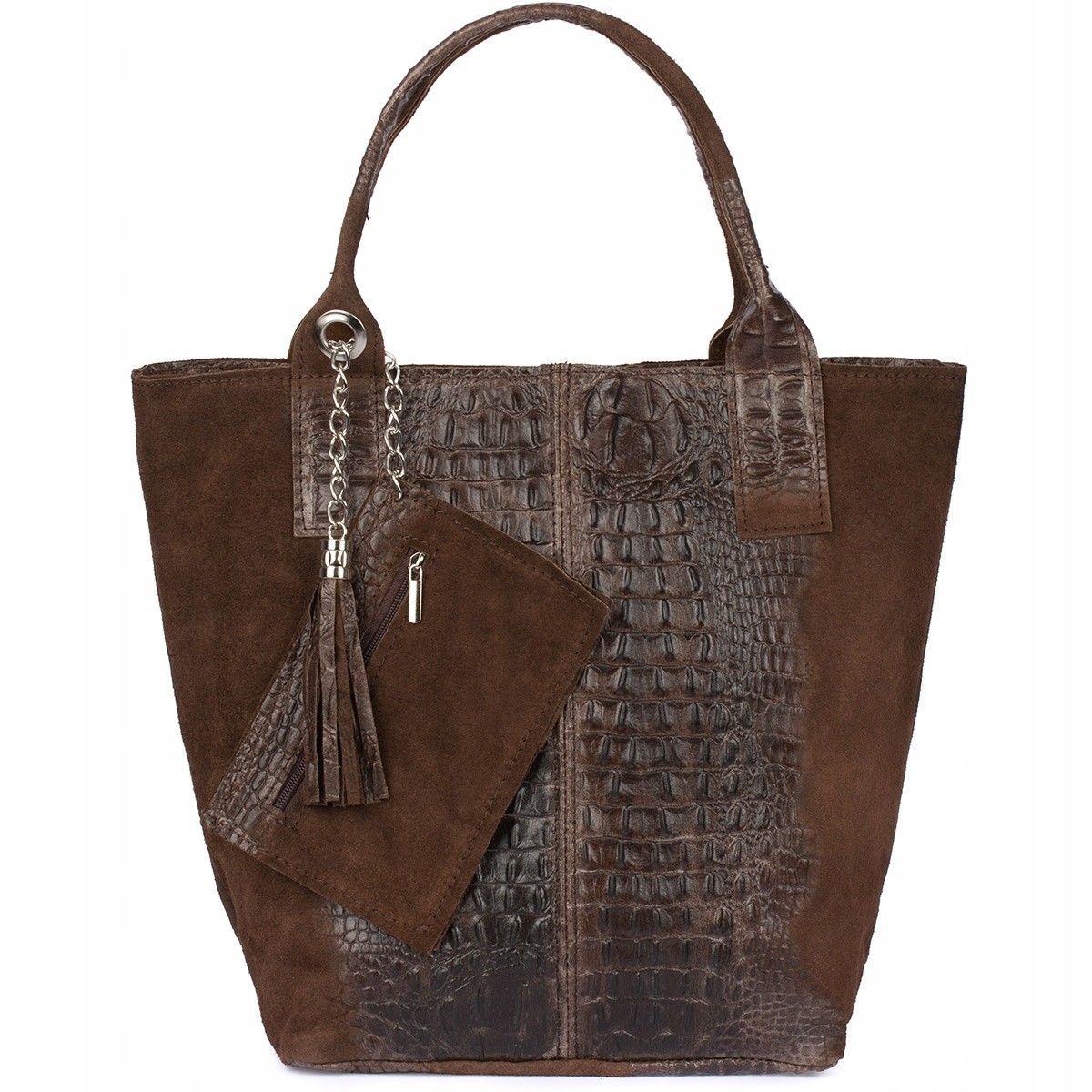 - Torebkę wyprodukowano we Włoszech z połączenia wysokiej jakości zamszowej oraz licowej skóry naturalnej