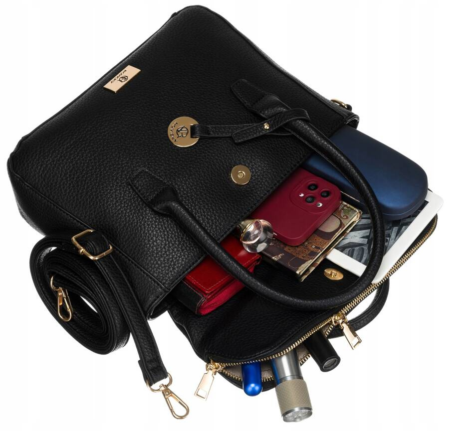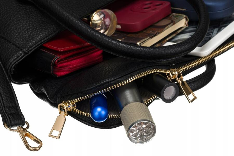 - 1 kieszeń zamykana na suwak umiejscowiona w klapie torby.