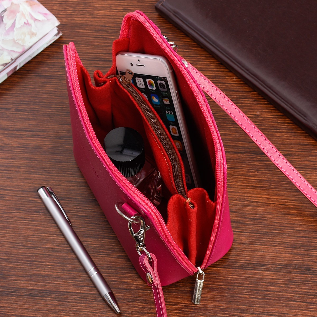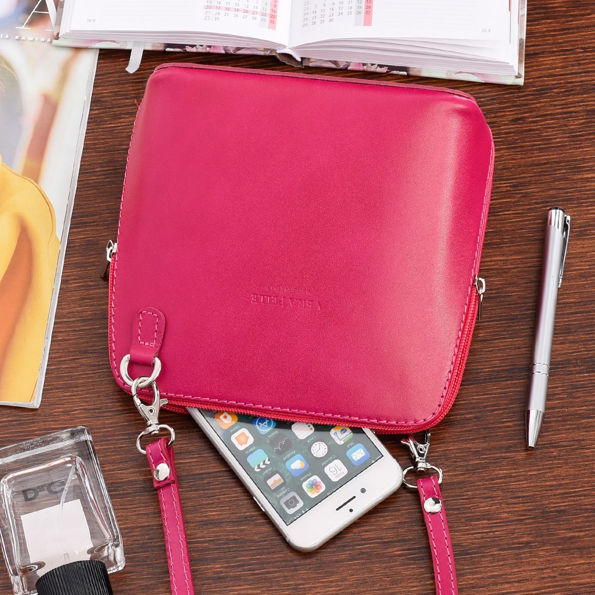 Vera Pelle Torebka Skórzana mała listonoszka fuksjowa K03