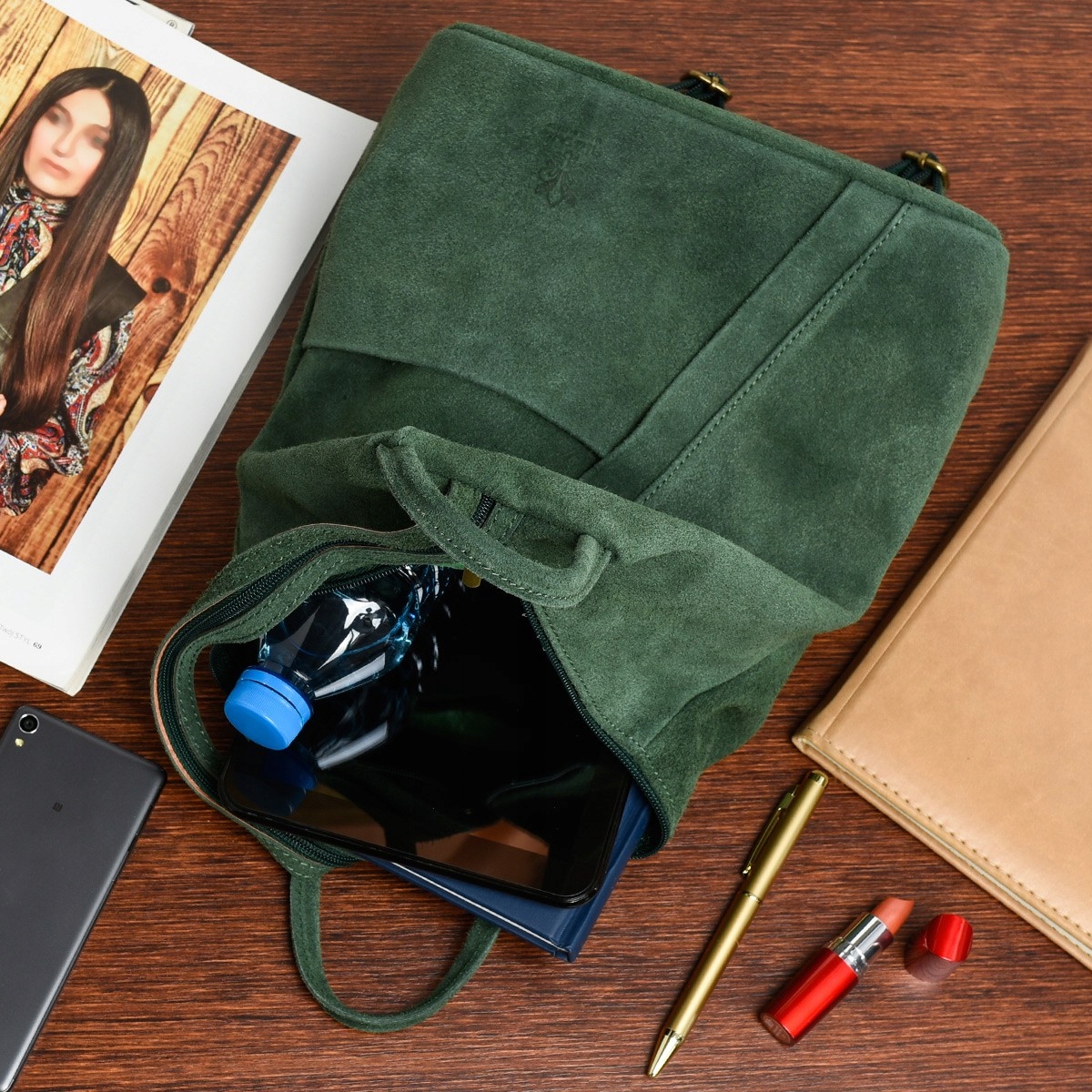 Gustowny i solidny, włoski plecaczek wykonany z naturalnej skóry zamszowej