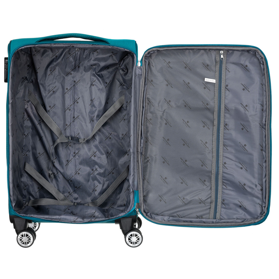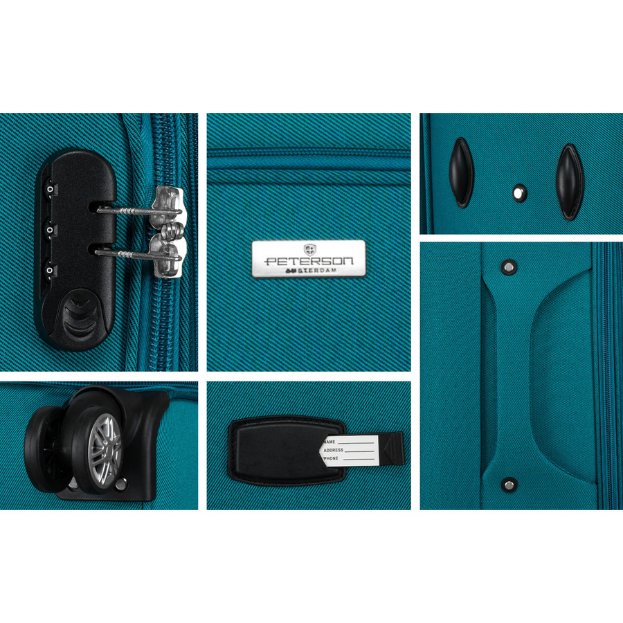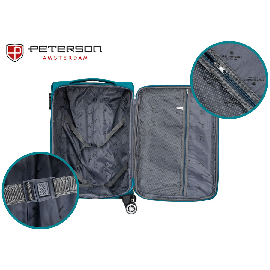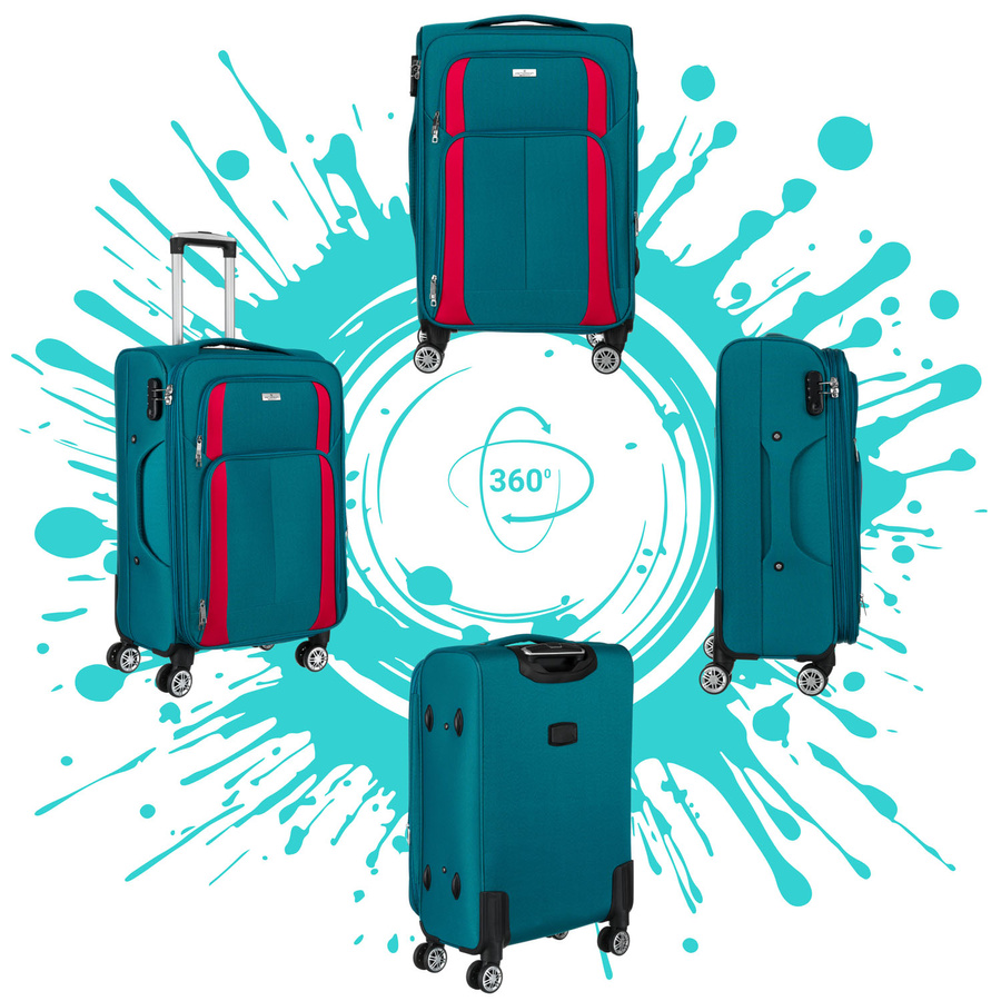 Walizka wykonana jest z bardzo wytrzymałej tkaniny poliestrowej. Materiał odporny na wilgoć, w bardzo małym stopniu pochłania wodę, a do tego łatwy w utrzymaniu czystości.