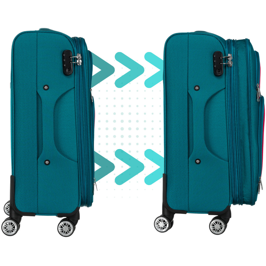 Model został wyposażony w dodatkowy suwak, który umożliwia poszerzenie walizki, zwiększając jej pojemność, dzięki czemu wzrasta jej pakowność.