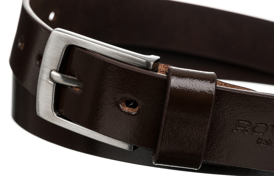 Wąski pasek męski z polerowanej skóry naturalnej licowej – Rovicky