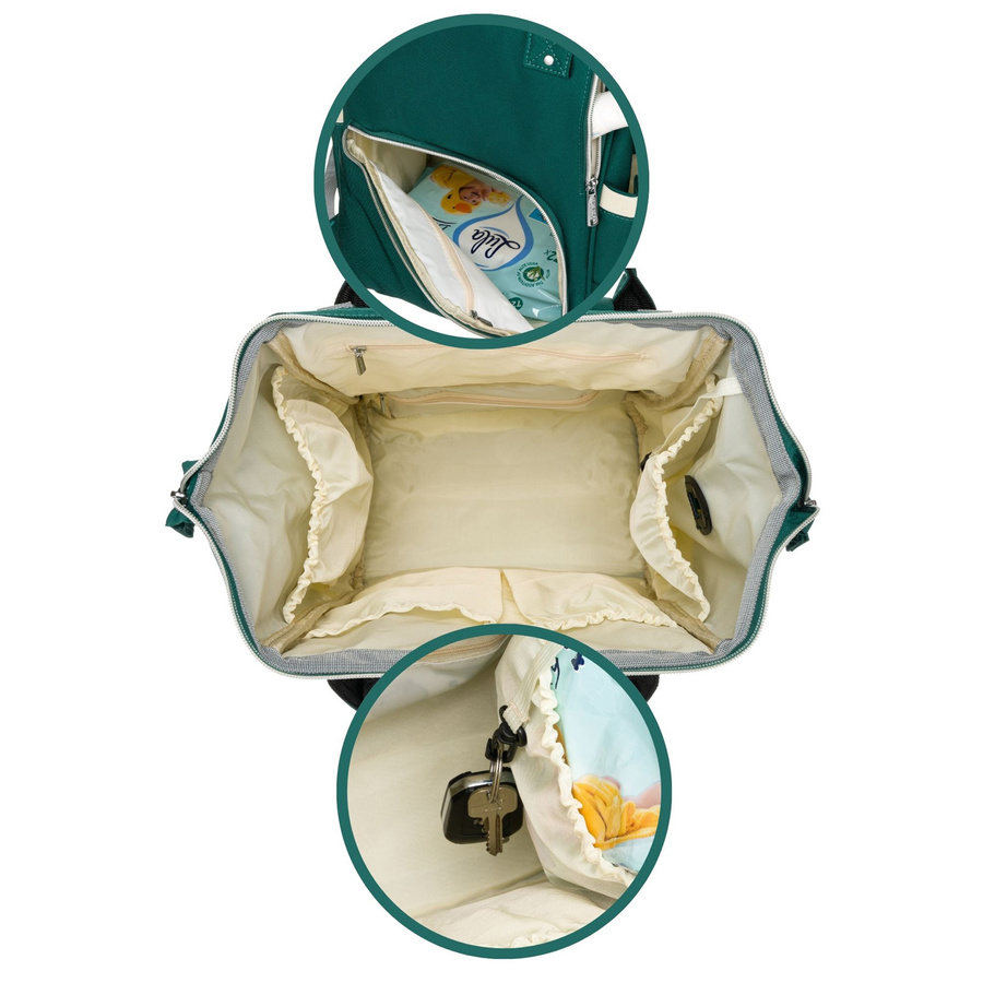 - Doskonała organizacja: Wyposażony w 14 kieszeni, w tym termoizolacyjne przegrody na butelki, które utrzymują temperaturę napojów dla Twojego malucha.