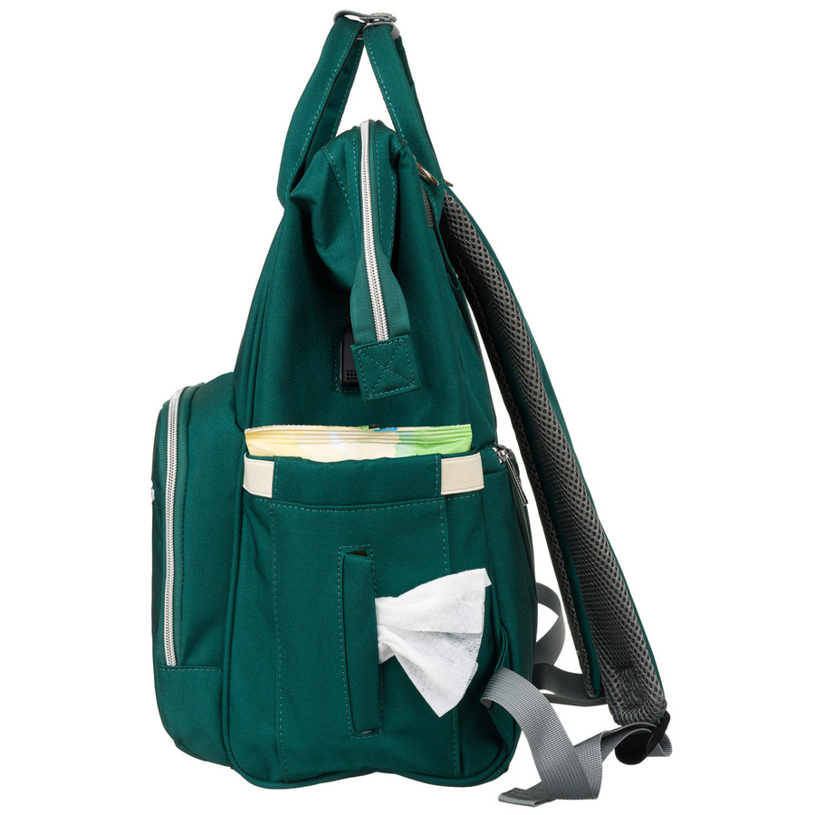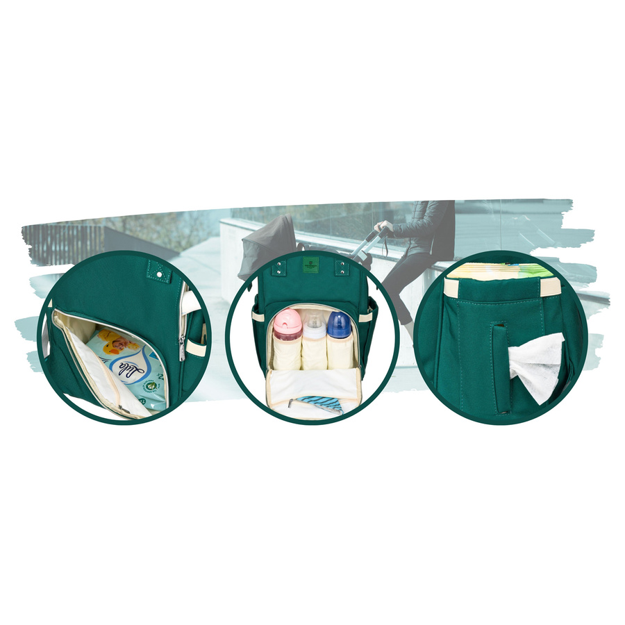 Wielofunkcyjny plecak dla mam z kieszeniami na suwak w zielonym kolorze – Peterson