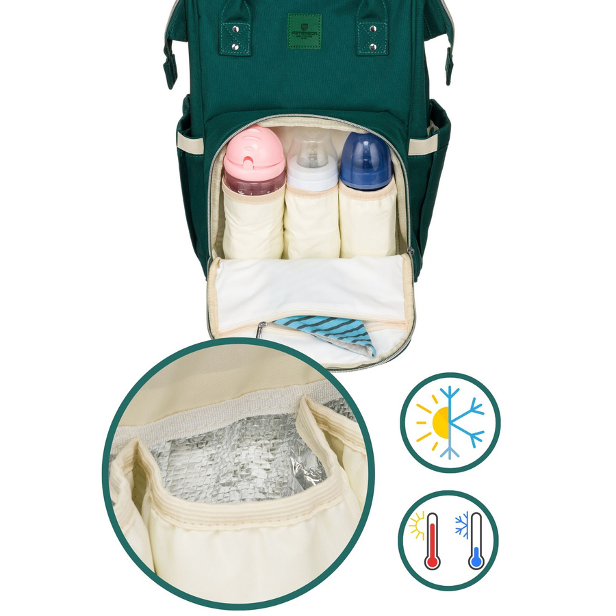 Plecak został wyposażony w 3 dedykowane kieszenie z termoizolacją, które doskonale sprawdzają się do przechowywania butelek z mlekiem, wodą czy sokiem, utrzymując ich temperaturę przez długi czas. Dzięki temu możesz mieć pewność, że napoje Twojego dziecka pozostaną ciepłe w chłodniejsze dni lub chłodne podczas upałów.