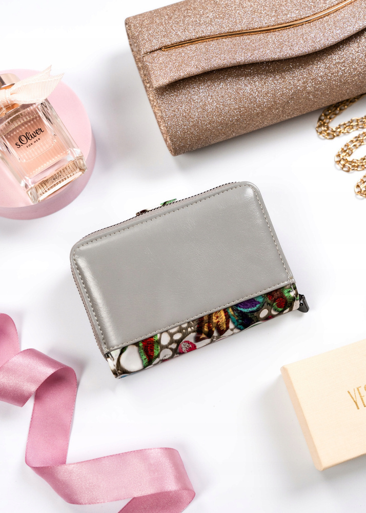 - Piękny motyl | Na przedniej części portfela znajduje się śliczne zdobienie – kolorowy motyl;