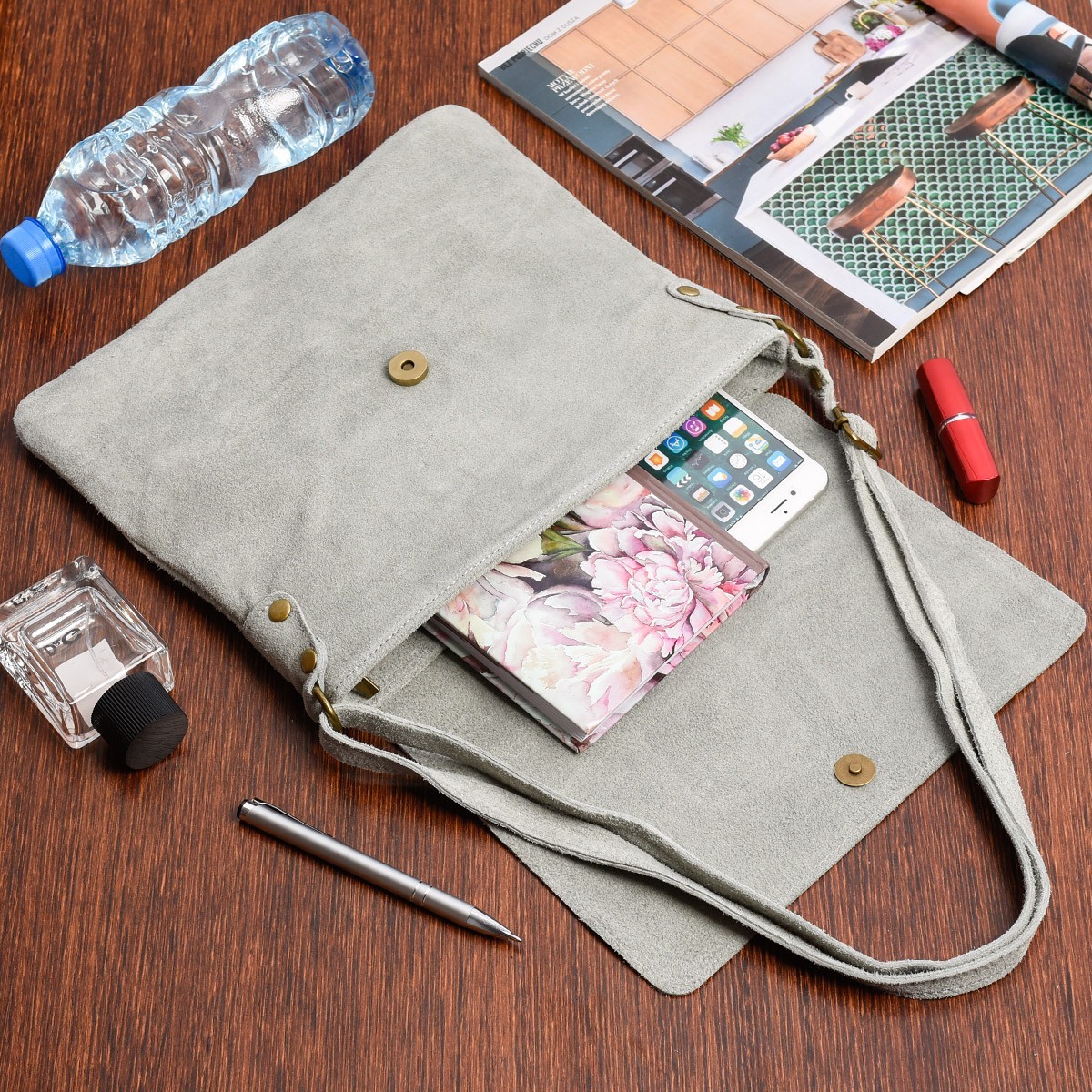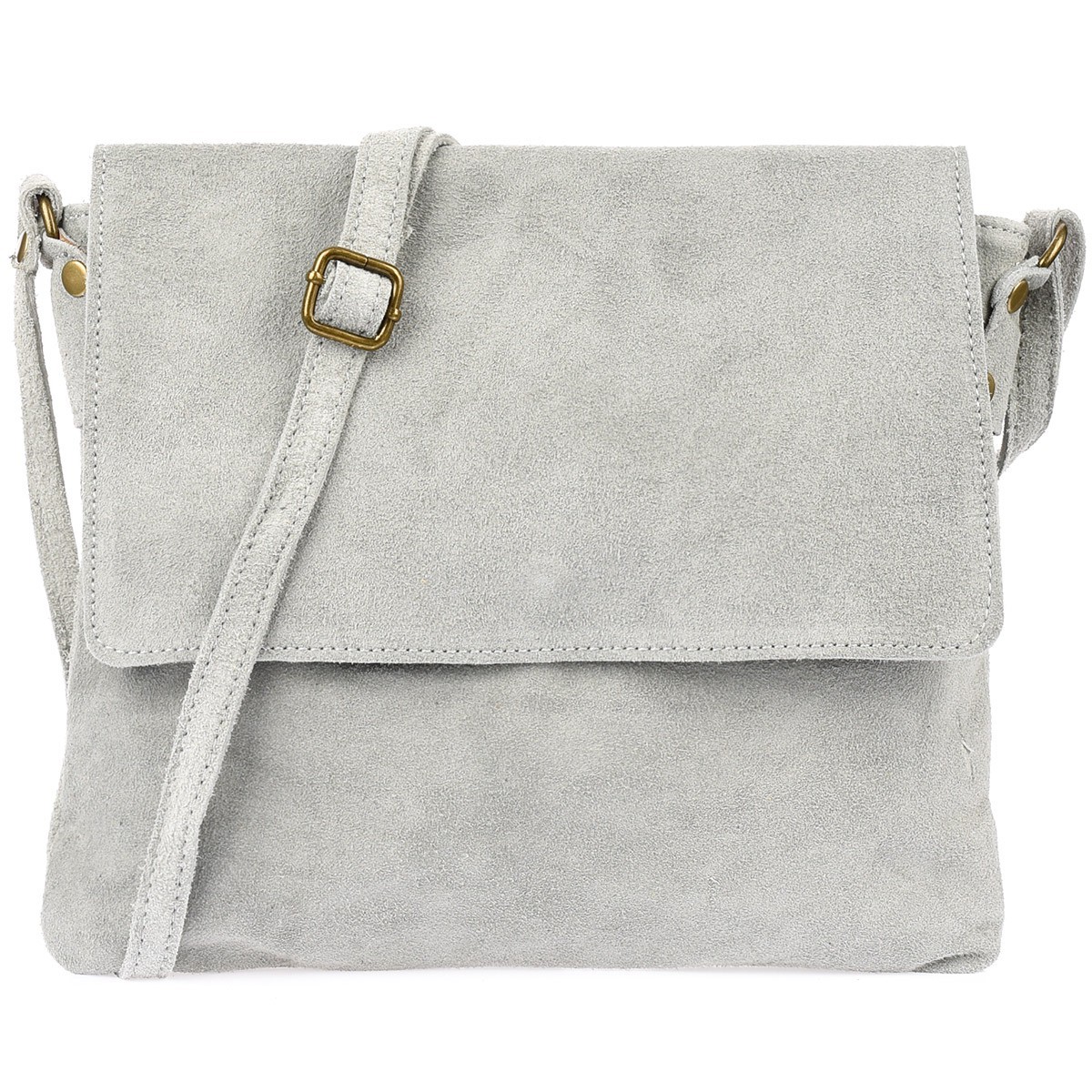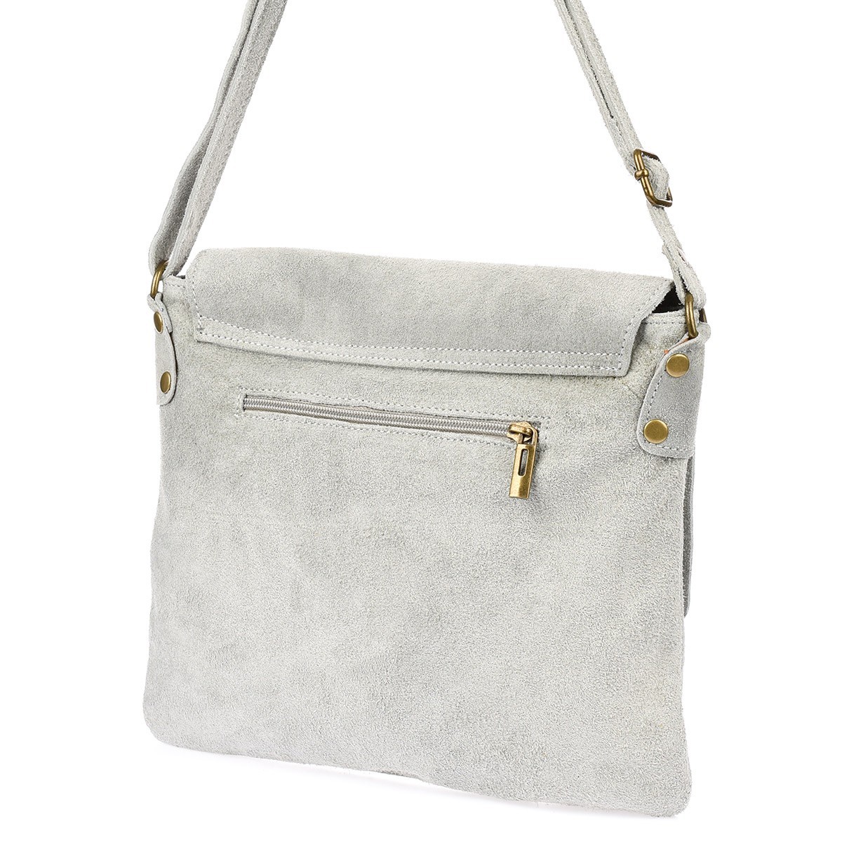 Włoska Torebka damska zamszowa listonoszka z klapą jasna szara B67
