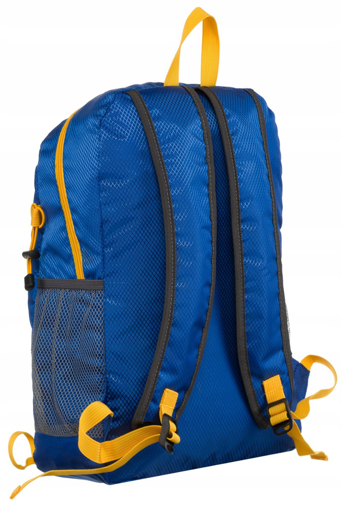 Plecak składany – po złożeniu jego wymiary w pokrowcu to: 16,5 x 10 x 10,5 cm. Lekki i komfortowy w użytkowaniu plecak wyposażony w regulowane szelki. Od wewnątrz wyściełane są siatkowanym materiałem, poprawiającym cyrkulację powietrza i odprowadzanie wilgoci.