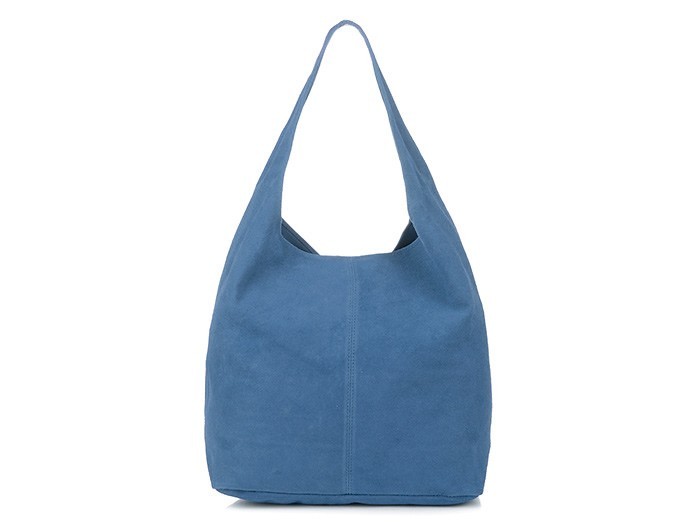 Prosta, miękka, lekka, skórzana torba- worek w fantastycznych kolorach, wyprodukowana we Włoszech, z włoskiej skóry naturalnej zamszowej