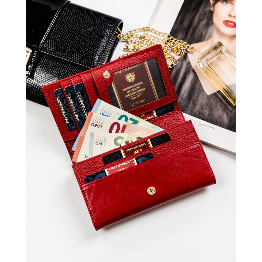 - 5 miejsc na karty płatnicze, wizytówki i dokumenty o standardowym formacie. Jedna z przegródek jest przezroczysta i świetnie nada się na fotografię.