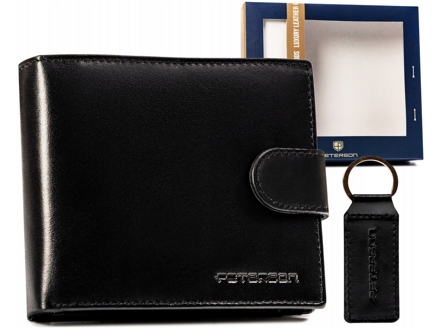 Zestaw prezentowy: skórzany portfel męski i brelok – Peterson