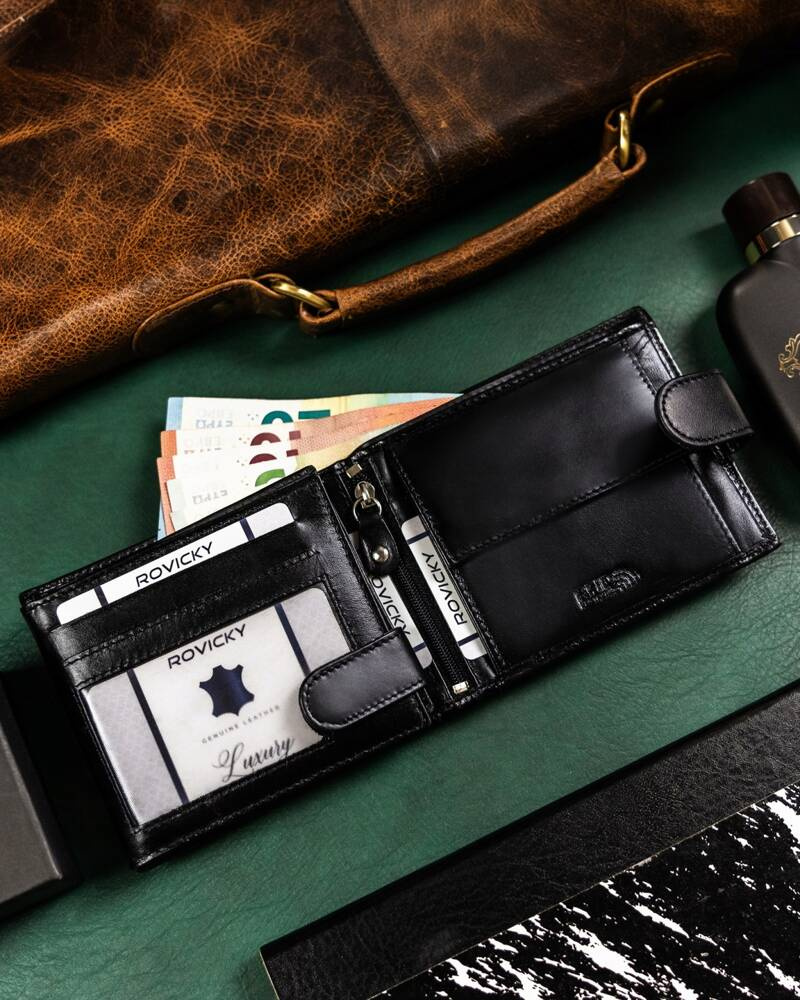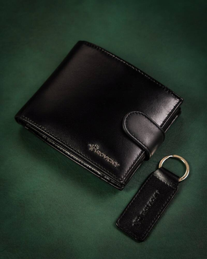 Zestaw prezentowy: skórzany portfel męski i brelok – Rovicky