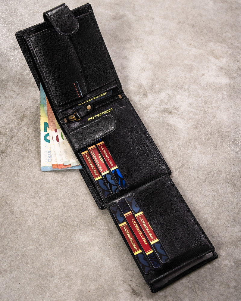 Portfel jest niezwykle funkcjonalny. Wnętrze zostało zaprojektowane tak, abyś mógł pomieścić w nim wszystkie najważniejsze rzeczy. Intuicyjne rozlokowanie przegródek i kieszonek zapewni komfort użytkowania.
