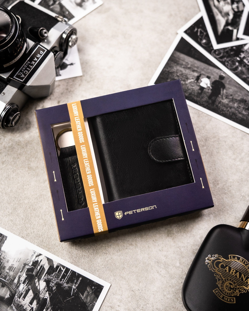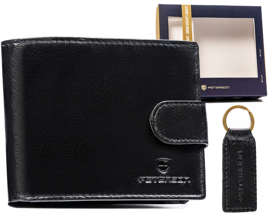 Zestaw prezentowy: skórzany, średni portfel męski i brelok do kluczy – Peterson