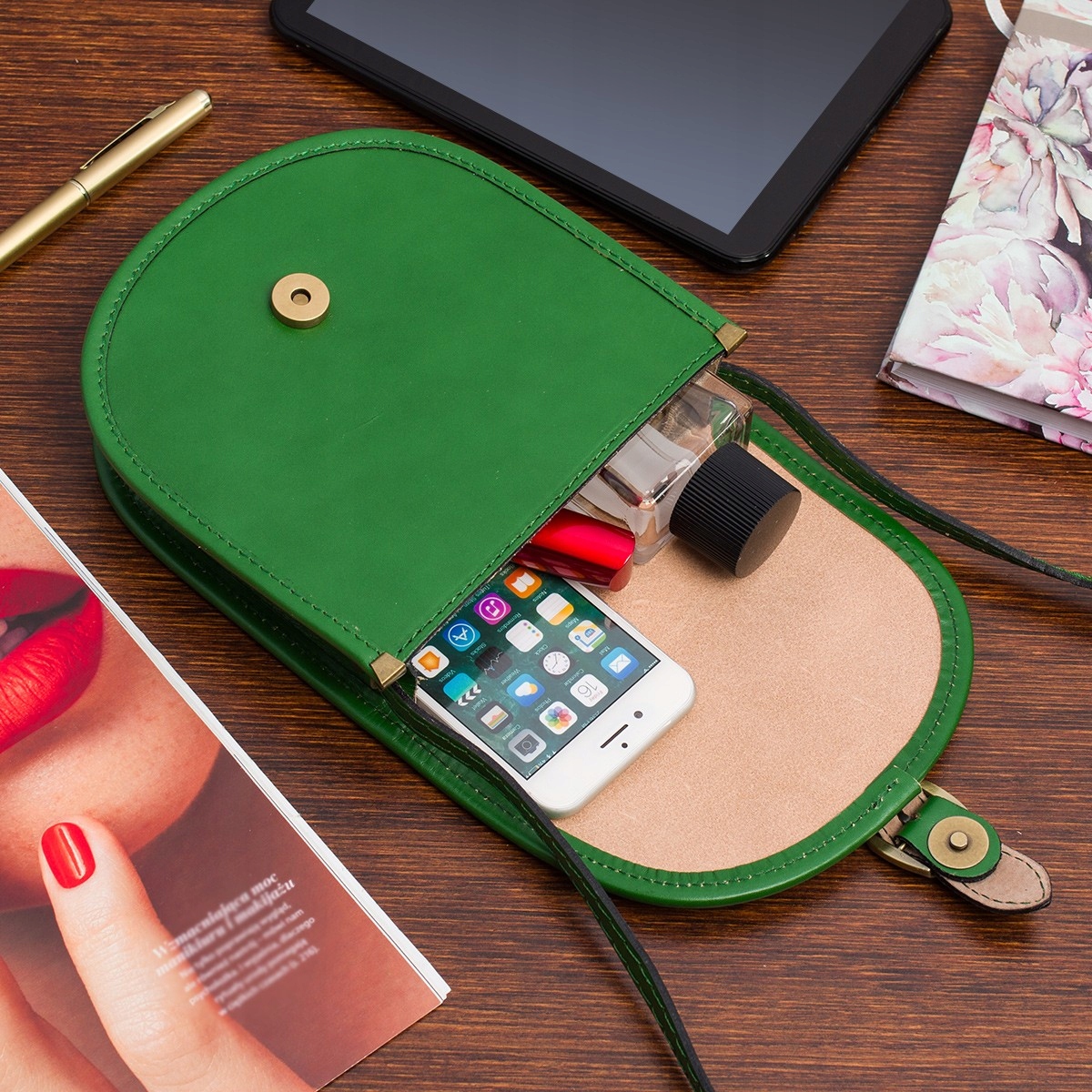 0208df584d6bb8578a82e22c2a49aaceZielona Beltimore Damska Skórzana Mała Torebka Listonoszka podkówka sztywna