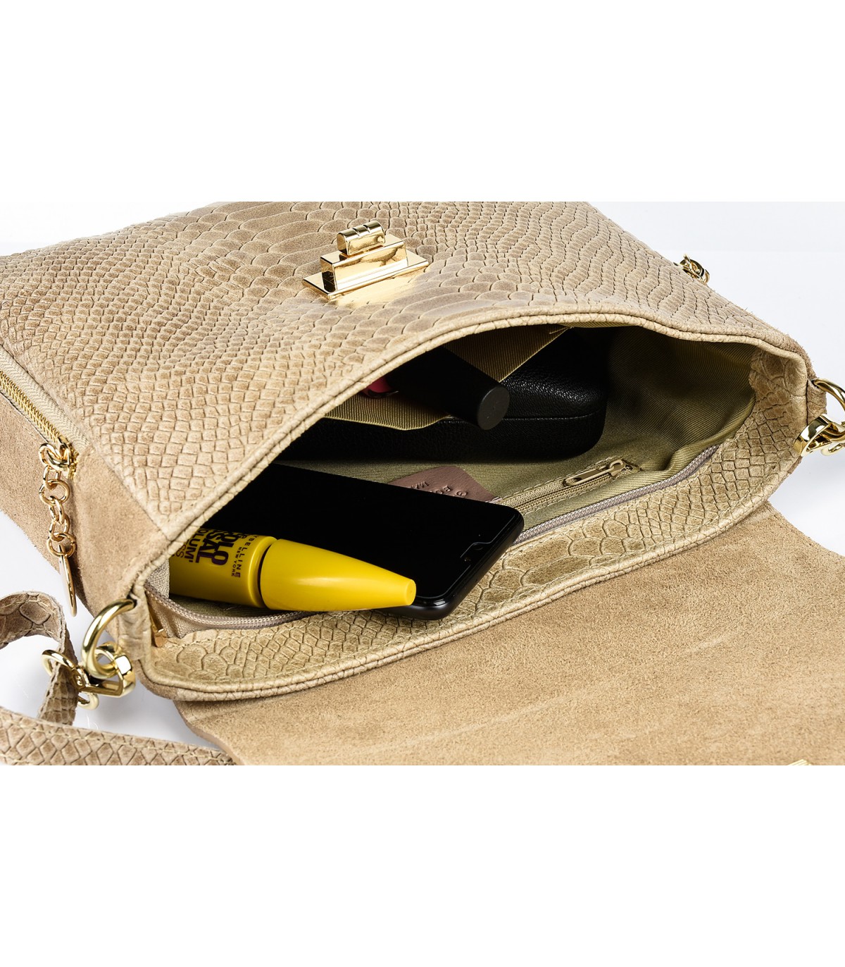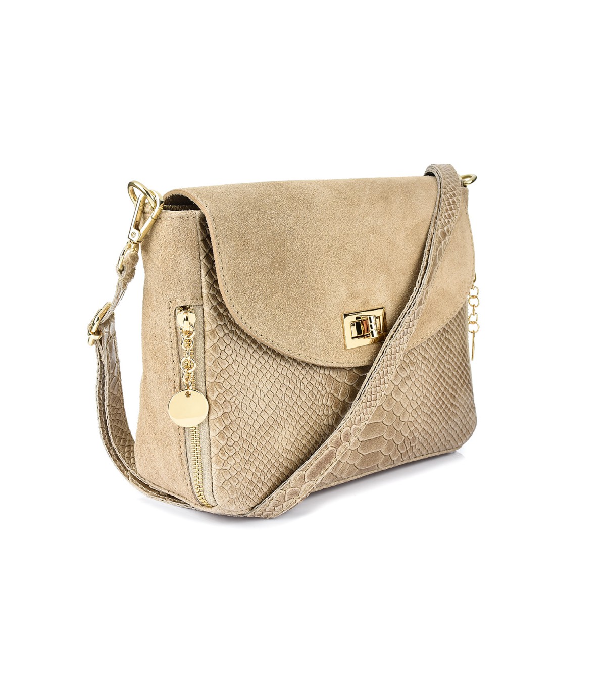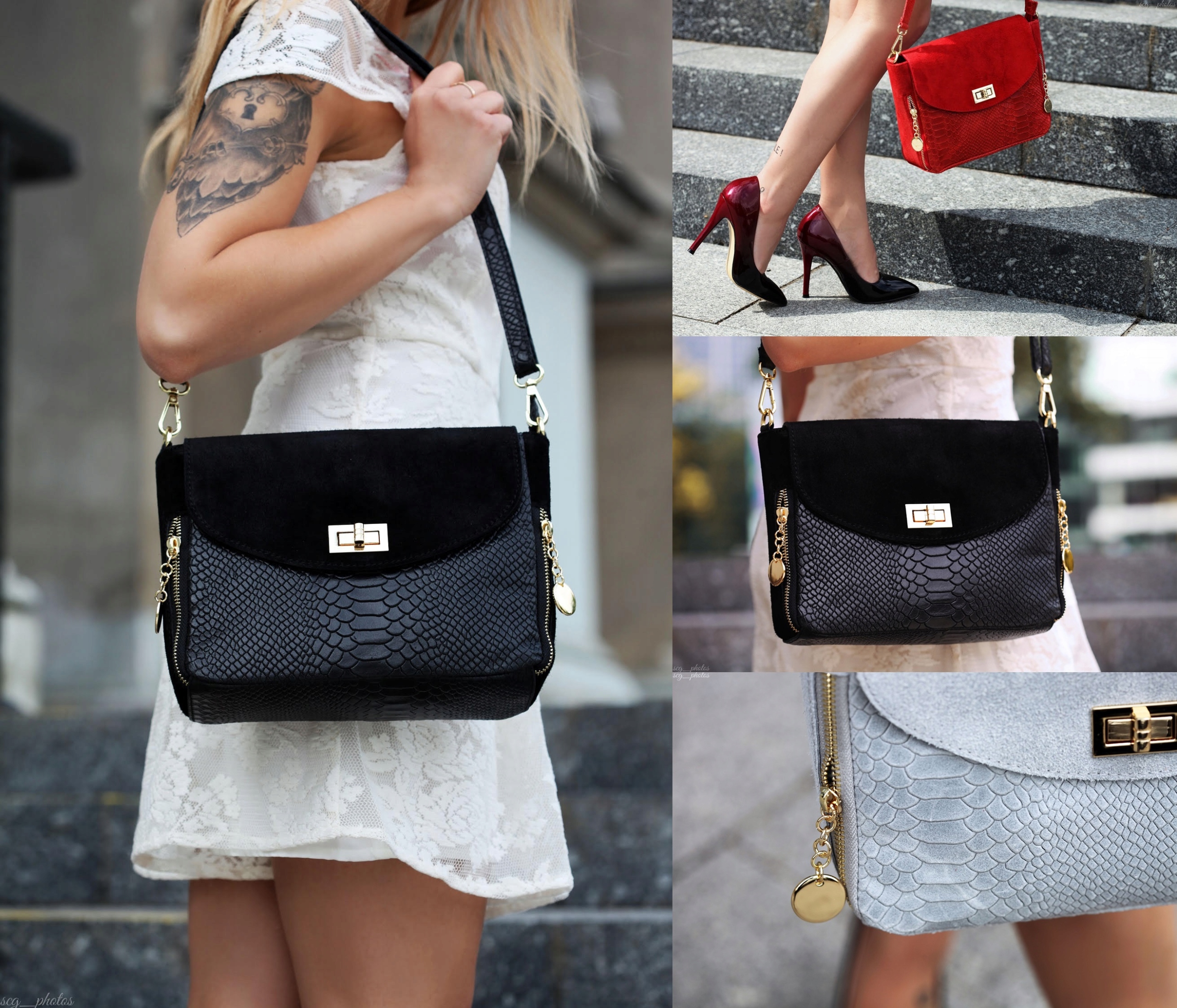 - Materiał: Skóra naturalna zamszowa + Skóra naturalna licowa o fakturze imitującej skórę węża