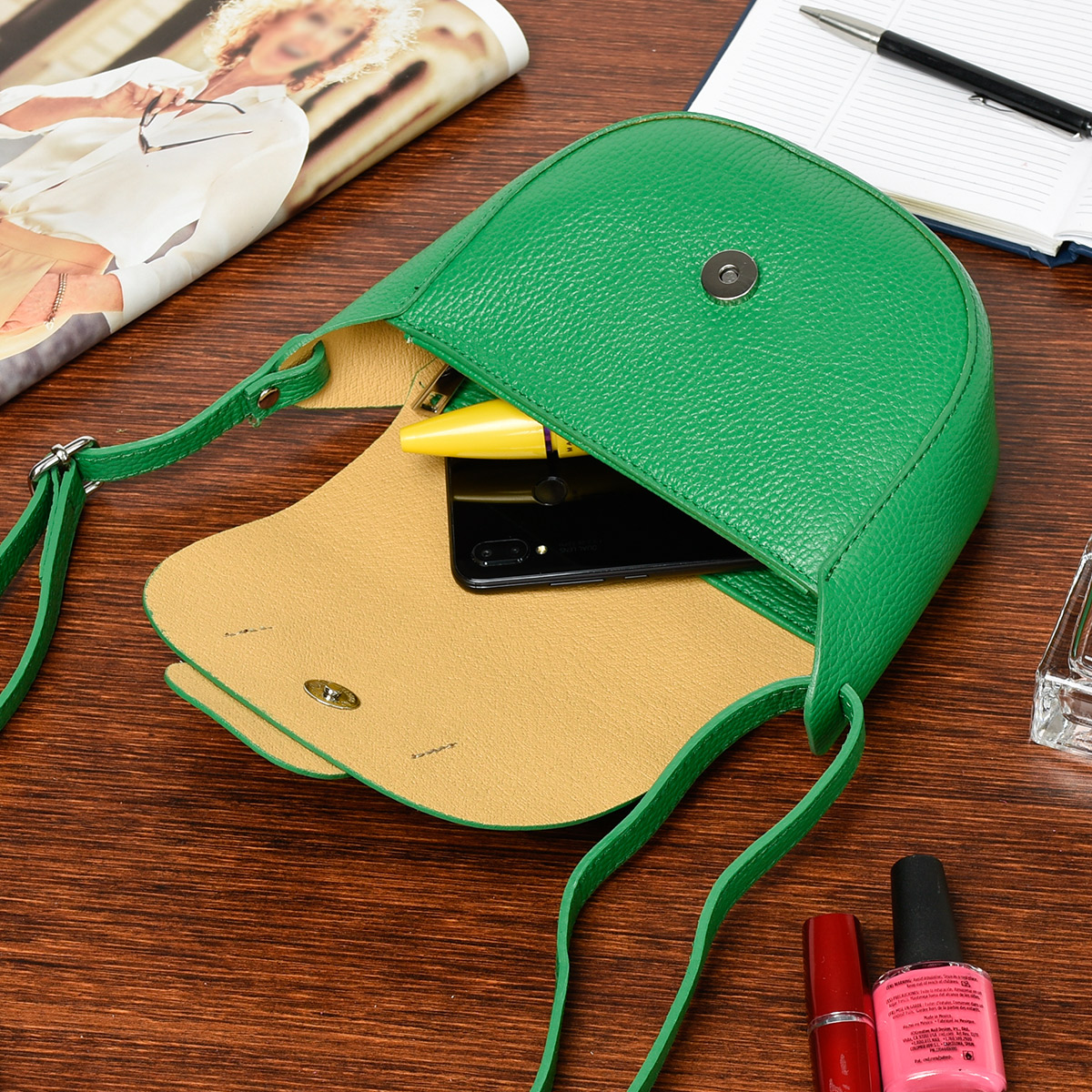 Zielona listonoszka skórzana, mała torebka damska ze skóry, włoska torebka na ramię Vera Pelle X41