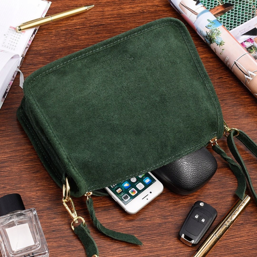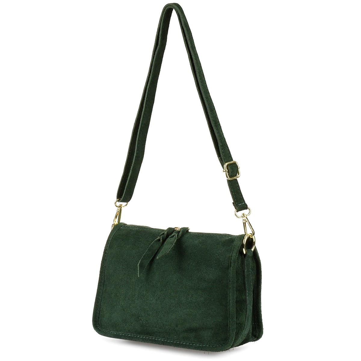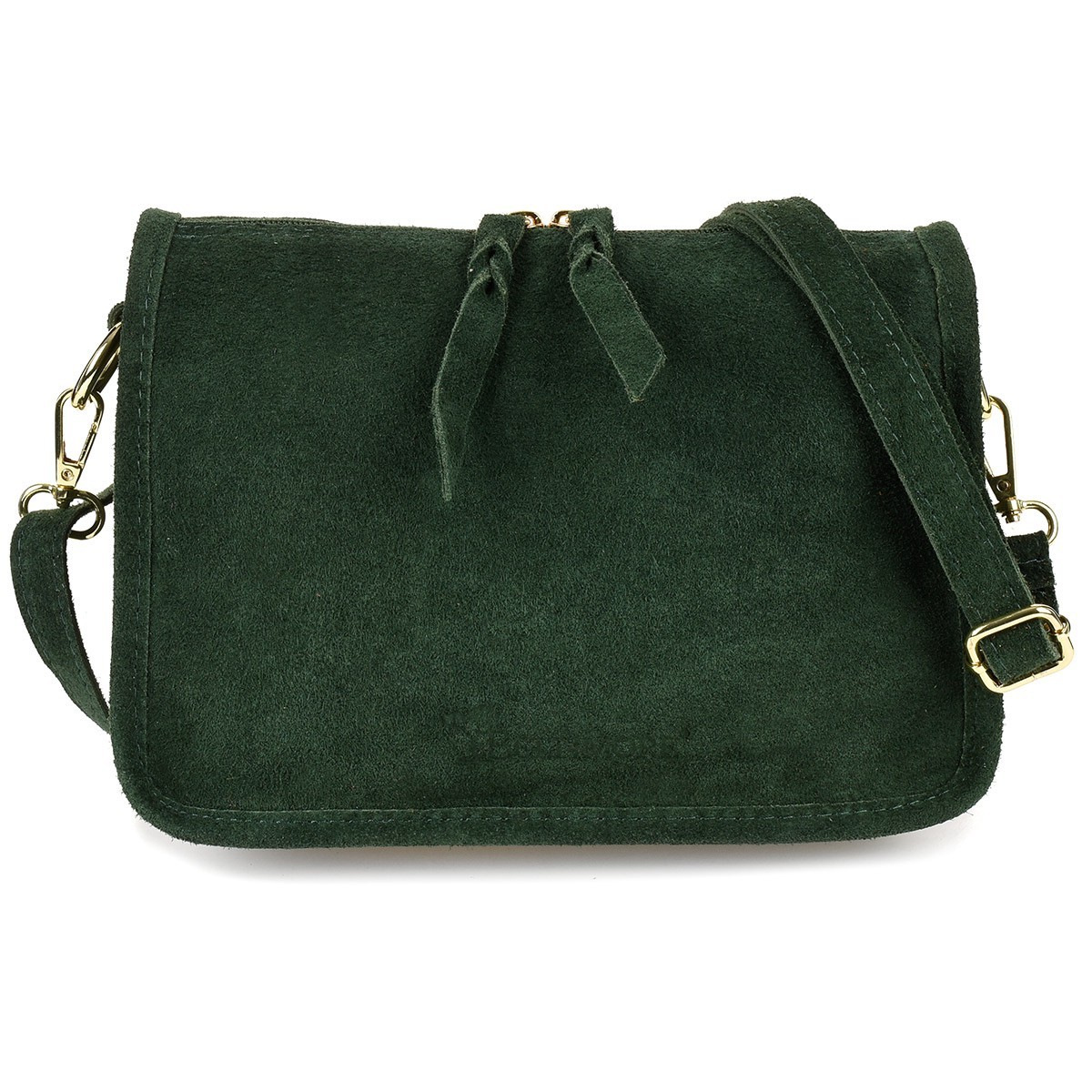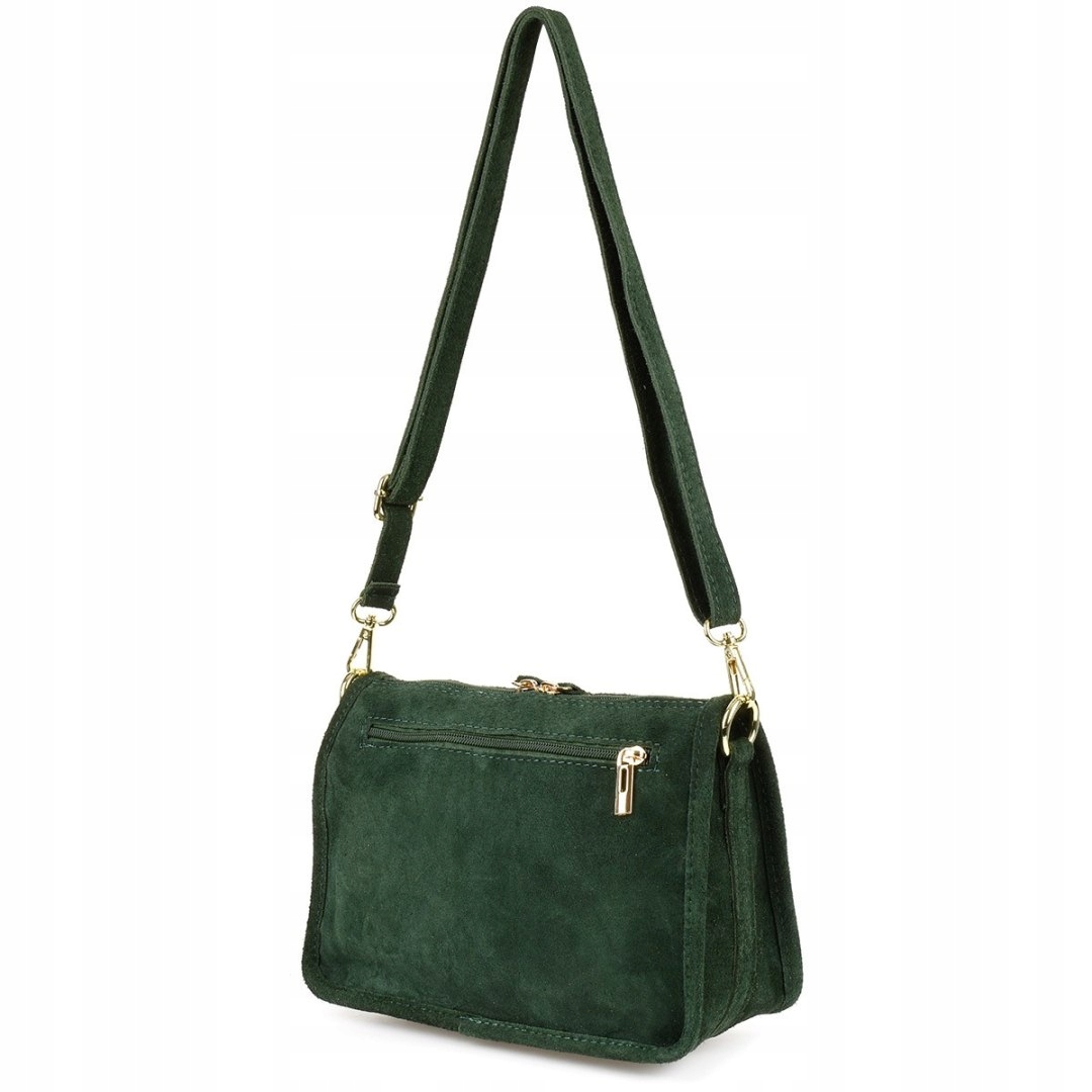 Zielona skórzana listonoszka damska włoska zamszowa kuferek Beltimore B64