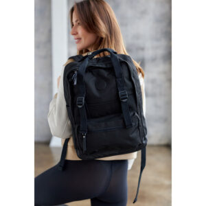 Miejski, czarny plecak zawieszony na regulowanych szelkach – Himawari Stylowy plecak wykonany z ekologicznej wodoodpornej tkaniny poliestrowej CANVAS. Modny, klasyczny i minimalistyczny design. Pojemny i funkcjonalny plecak idealny do codziennego użytku. Organizacja wnętrza Plecak mieści format A4. Duża ilość kieszonek i przegródek pozwoli na rozlokowanie wszystkich potrzebnych drobiazgów jak telefon, portfel, okulary, bidon, mały parasol…