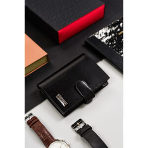 Portfel skórzany czarny na zatrzask z RFID – Peterson Ceniona marka | Produkt polskiej marki Peterson®, która od wielu lat z ogromnym powodzeniem działa na rynku galanterii skórzanej. Wyjątkowy design | Elegancki i praktyczny dodatek, który doskonale sprawdzi się na co dzień. Wysokogatunkowy materiał | Odszyty ze specjalnie wyselekcjonowanej skóry naturalnej, która gwarantuje jakość na lata. Rozbudowane wnętrze | Liczne kieszonki…