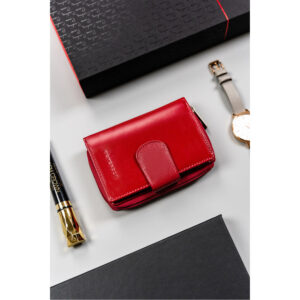 Czerwono-czarny portfel damski z sekcją na bilon zamykaną na bigiel – Peterson Wysokogatunkowy materiał | Portfel został odszyty ze specjalnie wyselekcjonowanej skóry naturalnej. Zewnętrzna część skóry jest lakierowana; Odpowiednio zaplanowane wnętrze | Zaprojektowany z myślą o maksymalnej pojemności i funkcjonalności; Ochrona przed kradzieżą danych | Portfel posiada specjalną technologię ochrony RFID, która zabezpiecza karty zbliżeniowe i…