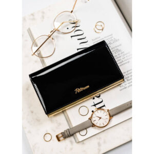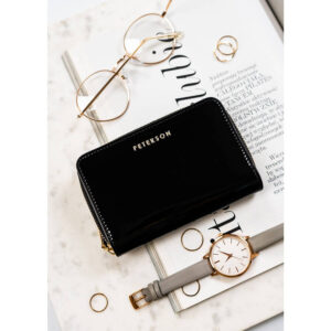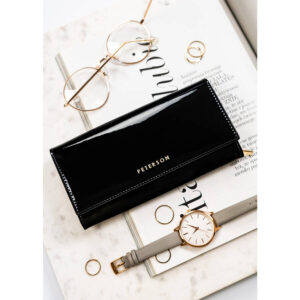 Lakierowany portfel damski ze skóry naturalnej w czarnym kolorze zamykany na zatrzask – Peterson Jakość i precyzja wykonania | Odszyty bardzo trwale z doskonałej jakości skóry naturalnej. Surowiec jest w pełni lakierowany po zewnętrznej stronie portfela; Design przepełniony klasyczną elegancją | Elegancki, poziomy portfel na zatrzask; Funkcjonalny| Model z maksymalnym poziomem funkcjonalności, dzięki dobrze zorganizowanemu systemowi przegródek i kieszonek;…