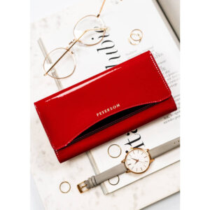 Elegancki skórzany portfel damski czerwony w motyle – Peterson Postaw na polską markę! | Produkt znanej i cenionej polskiej marki, której zaufały tysiące klientów! Jakość i precyzja wykonania | Odszyty bardzo trwale z doskonałej jakości skóry naturalnej. Skóra na zewnętrznej stronie jest lakierowana i ozdobiona tłoczonym monogramem z logo marki. Zawsze modny fason | Portfel o ponadczasowej stylistyce w…