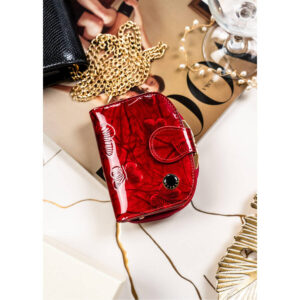 Stylowy czerwony portfel skórzany damski z przegródkami – Peterson Oryginalny design: Czerwony, lakierowany portfel damski wykonany ze skóry naturalnej z eleganckimi złotymi detalami i wytłoczonym motywem z motylami. Optymalna organizacja: Aż 9 miejsc na karty, 9 na większe dokumenty oraz 3 przegrody na banknoty – idealny do codziennego użytku. Wygodne przechowywanie: Portfel pomieści dowód rejestracyjny, bilon w dwóch…