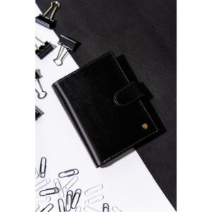 Portfel męski ze skóry naturalnej w czarnym kolorze zapinany na zatrzask – Ronaldo Wykonany z naturalnej skóry – elegancki, trwały i przyjemny w dotyku. 12 miejsc na karty i 5 schowków na dokumenty – wszystko na swoim miejscu. Przegroda na bilon i osobna na banknoty – wygoda przechowywania gotówki. Mieści dowód rejestracyjny. Przemyślana organizacja kart…