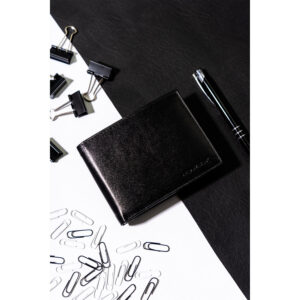 Mały portfel męski w czarnym kolorze wykonany ze skóry ekologicznej – Peterson Wykonany ze skóry ekologicznej. Praktyczny rozmiar mieszczący wszystko, co najważniejsze. Kieszeń na bilon zamykana na zamek. Ochrona RFID. Eleganckie pudełko – gotowy pomysł na prezent. Funkcjonalne wnętrze Wnętrze portfela zostało zaprojektowane z myślą o maksymalnym komforcie użytkowania. Znajdziesz tu 9 kieszonek na karty…