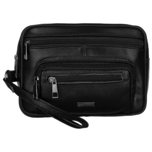 Saszetka męska ze skóry naturalnej w czarnym kolorze z wygodnym uchwytem – Rovicky Klasyczny design – ponadczasowy wygląd, który pasuje do każdej okazji. Naturalna skóra – materiał wysokogatunkowy, który gwarantuje jakość na lata. Praktyczny układ wnętrza – dwie komory i pięć kieszeni zapewniają idealną organizację. Bezpieczne zapięcie na suwak – ochrona dla Twoich najważniejszych przedmiotów….