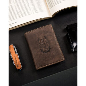 Skórzany portfel męski w kolorze brązowym bez zapięcia z tłoczeniem w kształcie psa Ten wyjątkowy portfel wykonany został z naturalnej skóry o stylowym, lekko przecieranym wykończeniu. zdobiony eleganckim tłoczeniem przedstawiającym psa – wiernego towarzysza, uosobienie lojalności, czujności i oddania. To doskonały wybór dla mężczyzny, który ceni sobie klasyczne rzemiosło i dodatki z duszą. Organizacja wnętrza…