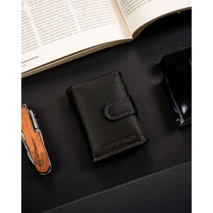 Mały, pionowy portfel męski w czarnym kolorze zamykany na zatrzask – Peterson Ten innowacyjny portfel to połączenie elegancji, bezpieczeństwa i technologicznej funkcjonalności. Kompaktowy, ale niezwykle wydajny – łączy klasyczne rzemiosło z nowoczesnym podejściem do przechowywania kart. Doskonały wybór dla osób ceniących innowacyjność i porządek. Etui na karty z mechanizmem wysuwania – szybki i efektowny dostęp….
