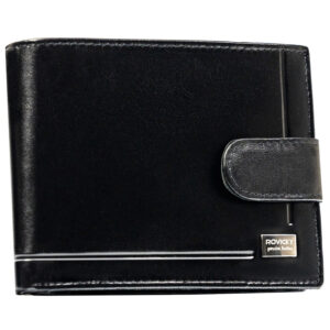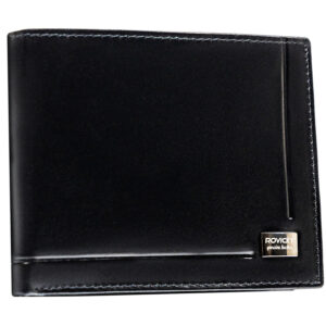 Męski portfel ze skóry naturalnej w czarnym kolorze – Rovicky Marka z doświadczeniem | Produkt polskiej marki Rovicky®, która od wielu lat ceniona jest na rynku galanterii skórzanej. Elegancki design | Model wykonany w klasycznym, męskim stylu, który będzie doskonałym uzupełnieniem Twoich codziennych stylizacji, jak i biznesowych. Jakość wykonania | Odszyta ze specjalnie wyselekcjonowanej skóry naturalnej, która gwarantuje jakość na lata….