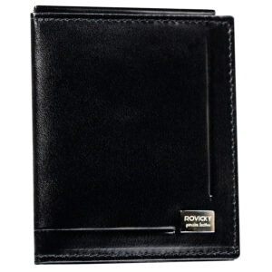 Portfel męski ze skóry naturalnej w czarnym kolorze bez zapięcia zewnętrznego – Rovicky Wysoka jakość wykonania | Portfel odszyty z naturalnej skóry bydlęcej licowej w zawsze modnym i klasycznym czarnym kolorze. Skórzana klasyka | Zainwestuj w portfel, z którym będziesz czuć się modnie i komfortowo. Rozbudowane wnętrze | Portfel średniej wielkości, który bez trudu zmieścisz w kieszeń spodni czy kurtki. Posiada…