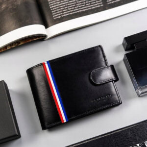 Duży, skórzany portfel męski na zatrzask – Rovicky Stylowy fason – portfel z tłoczonym logo na froncie. Model w orientacji poziomej z zapięciem zewnętrznym w postaci klamry na zatrzask; Wysoka jakość – portfel wykonany z wysokogatunkowej bydlęcej skóry, ale portfel to nie tylko skóra. Wykończony trwałymi materiałami, jak metalowy elementy, odporna na otarcia podszewka czy mocne nici,…