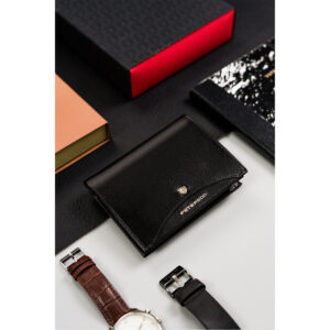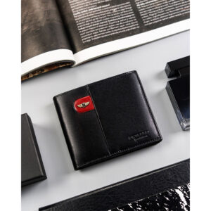 Mały, skórzany portfel bez zapięcia zewnętrznego – Peterson Skóra najwyższej jakości | Odszyty bardzo trwale z doskonałej jakości gładkiej skóry naturalnej w czarnym kolorze, dodatkowo na froncie portfela umieszczono skrzydlate logo marki na czerwonej wstawce; Elegancki model | Portfel o klasycznej stylistyce. Model w orientacji poziomej bez zapięcia zewnętrznego; Szereg miejsc na Twoje karty | Pomieści wszystkie najpotrzebniejsze dokumenty oraz…